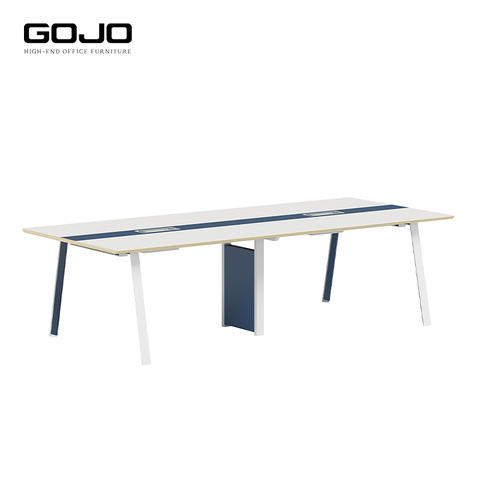 Gỗ trắng sang trọng văn phòng họp bàn đồ nội thất rắn tro gỗ bên bàn chân 2 màu Countertop văn phòng lớn Bàn hội nghị
